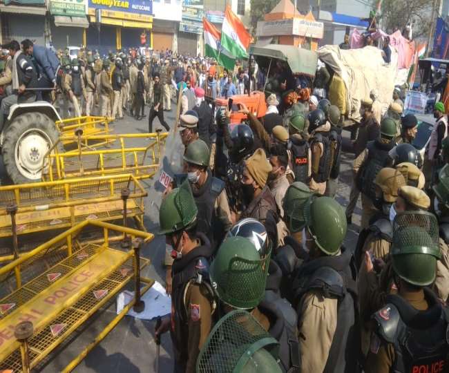 दिल्ली की सीमा पर दिए जा रहे किसानों के धरने ने मंगलवार को पूरी अराजकता दिखाई। पुलिस के साथ हुई मीटिंग में ये ट्रैक्टर मार्च वैसे तो 12 बजे के बाद निकलना तय था मगर अराजक किसानों ने सुबह 8 बजे से ही हंगामा करना शुरू कर दिया।