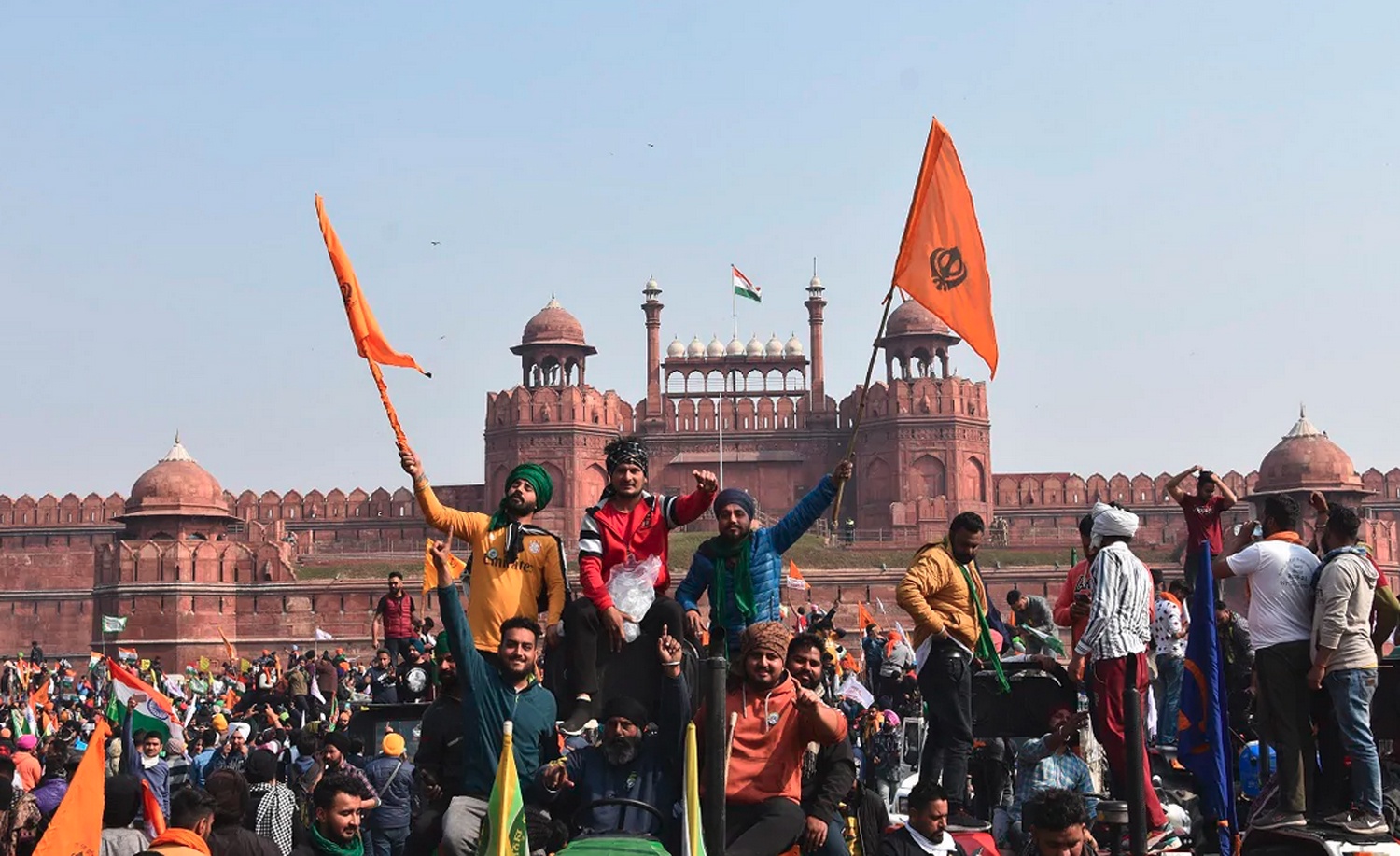 -पंजाबी गायक दीप सिंह सिद्धू स्वयं लाल किले की प्राचीर पर चढ़ा और खालसा का ध्वज फहराया। ये गायक ने केवल आज़ाद हैं बल्कि बयान पर बयान दिए जा रहा है।