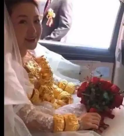 गहनों का वजन इतना है कि दुल्हन का हिलना भी मुश्किल था और चलने के लिए वह दूल्हे की मदद ले रही थी। मीडिया रिपोर्ट्स के मुताबिक दुल्हन को ये जेवर उसके पति ने दहेज के रूप में दिए थे। दूल्हे ने उसे सोने के 60 नेकलेस दिए और प्रत्येक का वजन एक किलोग्राम था। नेकलेस के अलावा वह हाथों में भारी कंगन भी पहने हुए है।