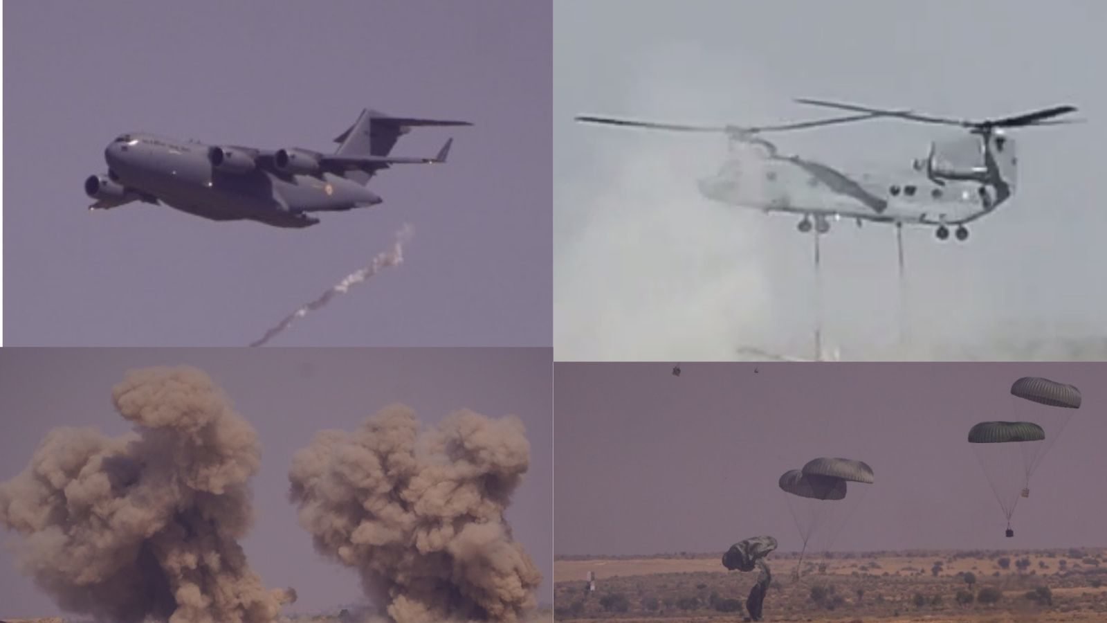 राजस्थान के जैसलमेर की चांधन फील्ड फायरिंग रेंज शुक्रवार को राफेल लड़ाकू विमान की गड़गड़ाहट से गूंज उठी. उसके आने और दुश्मन पर हमले के अंदाज ने देखने वालों को चौंका दिया. उसकी फुर्ती और ताकत पर सभी हैरान थे. दरअसल, राफेल अपनी शक्ति का प्रदर्शन कर रहा था. मौका था 'वायु शक्ति- 2022' की फुल ड्रेस रिहर्सल का. इस शक्ति प्रदर्शन में राफेल पहली बार हिस्सा ले रहा है. 'वायु शक्ति- 2022' की रिहर्सल में करीब 148 विमानों ने हिस्सा लिया.